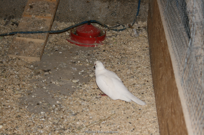 Vi har nu även fått in en Vit skrattduva som vi givetvis tackar för. Hon heter Pinnen och är som alla skrattduvor super tam.